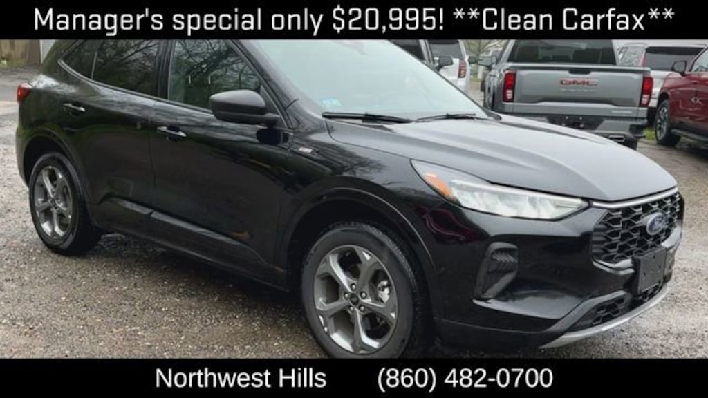 **CAR BRAVO CERTIFIED **, **Clean Carfax**, **All Wheel Drive**, Bluetooth Phone/Audio, **LOCALLY OWNED AND TRADED**, Escape ST-Line, 4D Sport Utility, 1.5L EcoBoost, 8-Speed Automatic, AWD, Black Metallic, Ebony, 4-Wheel Disc Brakes, 6 Speakers, ABS brakes, Air Conditioning, Alloy wheels, AM/FM radio: SiriusXM, AM/FM Stereo, Auto High-beam Headlights, Automatic temperature control, Cold Weather Package, Delay-off headlights, Dual front impact airbags, Dual front side impact airbags, Emergency communication system: SYNC 4 911 Assist, Equipment Group 300A, Exterior Parking Camera Rear, FordPass Connect, Four wheel independent suspension, Front anti-roll bar, Front Bucket Seats, Front Center Armrest, Front dual zone A/C, Fully automatic headlights, Heated Front Row Seats, Heated Sideview Mirrors, Heated Steering Wheel, Knee airbag, Low tire pressure warning, Occupant sensing airbag, Overhead airbag, Panic alarm, Power driver seat, Power Liftgate, Power steering, Power windows, Radio data system, Rear anti-roll bar, Rear window defroster, Rear window wiper, Remote keyless entry, Remote Starter System, Speed-sensing steering, Speed-Sensitive Wipers, Split folding rear seat, Sport steering wheel, Steering wheel mounted audio controls, SYNC 4, Traction control, Variably intermittent wipers, Wheels: 18 Rock Metallic Painted Aluminum.