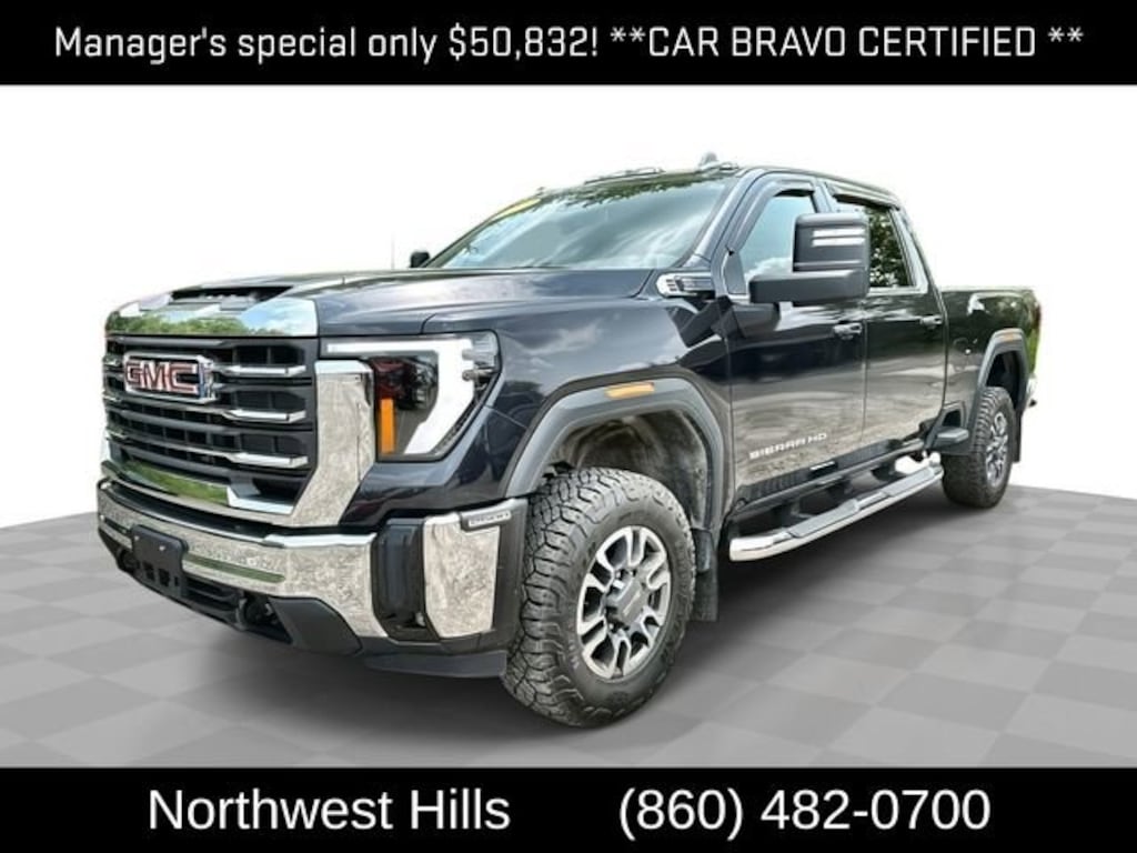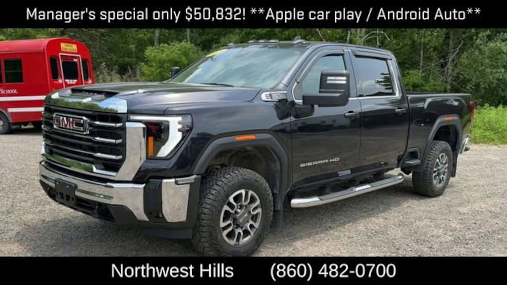 **CAR BRAVO CERTIFIED **, **4 Wheel Drive**, Bluetooth Phone/Audio, **Apple car play / Android Auto**, **LOCALLY OWNED AND TRADED**, 4D Crew Cab, 6.6L V8, 10-Speed Automatic, 4WD, Titanium Rush Metallic, Black Cloth, 10-Way Power Driver Seat Adjuster w/Lumbar, 120-Volt Bed Mounted Power Outlet, 120-Volt Instrument Panel Power Outlet, 2 Charge-Only Rear USB Ports, 2 Charge/Data USB Ports, 2-Speed Electronic Shift Transfer Case, 220-Amp Alternator, 3.73 Rear Axle Ratio, 4-Way Manual Driver Seat Adjuster, 4-Wheel Disc Brakes, A/C w/Dual-Zone Automatic Climate Control, ABS brakes, Apple CarPlay/Android Auto, Auto High-beam Headlights, Chrome Surround Grille w/Chrome Insert Bars, Deep-Tinted Glass, Delay-off headlights, Dual front impact airbags, Dual front side impact airbags, Electric Rear-Window Defogger, Front anti-roll bar, Front wheel independent suspension, Fully automatic headlights, GMC Connected Access Capable, Heated Driver & Front Outboard Passenger Seats, Heated Package, Heated Steering Wheel, Hill Descent Control, Integrated Trailer Brake Controller, Keyless Open & Start, LED Fog Lamps, LED Smoked Amber Roof Marker Lamps, Low tire pressure warning, Manual Tilt Wheel Steering Column, Manual Tilt-Wheel/Telescoping Steering Column, Occupant sensing airbag, OnStar & GMC Connected Services Capable, Overhead airbag, Panic alarm, Pickup Box, Power steering, Power windows, Preferred Equipment Group 3SA, Push Button Start, Remote keyless entry, Remote Start Package, Remote Vehicle Starter System, SiriusXM w/360L, SLE Convenience Package, SLE Value Package, Snow Plow Prep/Camper Package, Spray-On Bedliner, Steering Wheel Audio Controls, Steering wheel mounted audio controls, Suspension Package, Unauthorized Entry Theft-Deterrent System, Wireless Phone Projection, X31 Off-Road Package, X31 Off-Road Suspension.