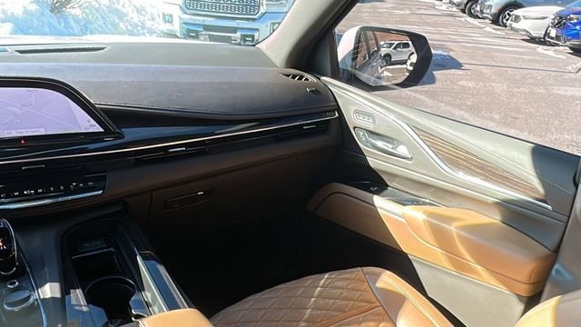 **CAR BRAVO CERTIFIED **, 4WD, Brandy With Very Dark Atmosphere Accents Leather, 16.9 Diagonal OLED Infotainment Screen, 19 Speakers, 2-Presets Memory For Driver Seat Adjuster, 3.23 Axle Ratio, 3rd row seats: split-bench, 4-Way Power Driver Lumbar Seat Adjuster, 4-Way Power Front Passenger Lumbar Seat Adjuster, 4-Wheel Disc Brakes, 8-Way Power Driver Seat Adjuster, 8-Way Power Front Passenger Seat Adjuster, ABS brakes, Adaptive Cruise Control, Adaptive suspension, Air Conditioning, Air Ionizer, Air Ride Adaptive Suspension, AKG Studio 19-Speaker Audio System, All-Weather Floor Liner Package (LPO), Alloy wheels, AM/FM radio: SiriusXM with 360L, Apple CarPlay/Android Auto, Audio memory, Auto High-beam Headlights, Auto tilt-away steering wheel, Auto-dimming door mirrors, Auto-dimming Rear-View mirror, Automatic Emergency Braking, Automatic Seat Belt Tightening, Automatic temperature control, Body-Color Door Handles, Brake assist, Bumpers: body-color, Compass, Delay-off headlights, Door Lock & Latch Shields, Driver Assist Tech Package, Driver door bin, Driver vanity mirror, Dual front impact airbags, Dual front side impact airbags, Electronic Cruise Control w/Set & Resume Speed, Electronic Limited-Slip Differential, Electronic Stability Control, Emergency communication system: OnStar and Cadillac connected services capable, Enhanced Automatic Emergency Braking, Enhanced Automatic Parking Assist, Four wheel independent suspension, Front anti-roll bar, Front Bucket Seats, Front Center Armrest w/Storage, Front dual zone A/C, Front reading lights, Fully automatic headlights, Garage door transmitter, Glass Breakage Sensor, Gloss Black Escalade Nameplate (LPO), HD Radio, Heads-Up Display, Heated & Ventilated Driver & Front Passenger Seats, Heated door mirrors, Heated Driver & Front Passenger Seats, Heated front seats, Heated rear seats, Heated steering wheel, Hitch Guidance w/Hitch View, Illuminated entry, Illuminating Front & Rear Sill Plates, In-Vehicle Trailering System App, Integrated Trailer Brake Controller, Lane Keep Assist w/Lane Departure Warning, Leather Seating Surfaces w/Precision Perf Inserts, Leather steering wheel, Low tire pressure warning, Magnetic Ride Control Suspension, Memory seat, Monochrome Cadillac Emblems (LPO), Navigation System, Night Vision, Occupant sensing airbag, Onyx Package (LPO), Outside temperature display, Overhead airbag, Overhead console, Passenger door bin, Passenger vanity mirror, Power door mirrors, Power driver seat, Power Liftgate, Power moonroof, Power Panoramic Tilt-Sliding Sunroof, Power passenger seat, Power steering, Power windows, Power-Retractable Assist Steps, Preferred Equipment Group 1SC, Puddle Lamps w/Cadillac Crest (LPO), Radio data system, Radio: AM/FM/SiriusXM w/Navigation, Rain sensing wipers, Rear air conditioning, Rear anti-roll bar, Rear Camera Mirror, Rear Camera Mirror Washer, Rear Cross Traffic Alert, Rear reading lights, Rear Seat Entertainment System, Rear window defroster, Rear window wiper, Reconfigurable Full-Color Head-Up Display, Remote keyless entry, Reverse Automatic Braking, Roof rack: rails only, Running Board Assist Steps, SiriusXM w/360L, Soft Closing Front & Rear Doors, Speed control, Split folding rear seat, Spoiler, Steering wheel memory, Steering wheel mounted audio controls, Tachometer, Teen Driver, Telescoping steering wheel, Theft-Deterrent Alarm System, Tilt steering wheel, Traction control, Trailer Side Blind Zone Alert, Trip computer, Turn signal indicator mirrors, Variably intermittent wipers, Vehicle Inclination Sensor, Vehicle Interior Movement Sensor, Ventilated front seats, Voltmeter, Wheels: 22 12-Spoke Gloss Black Alloy (LPO), Wheels: 22 12-Spoke Polished Alloy, Wheels: 22 Interim (LPO), Wireless Apple CarPlay/Wireless Android Auto.