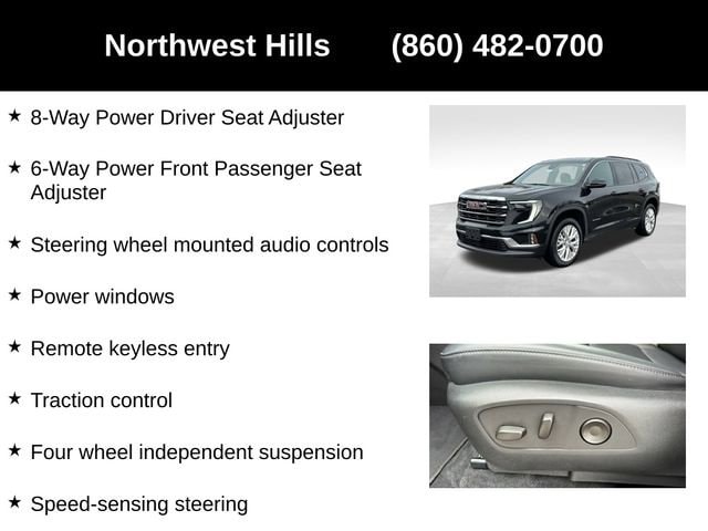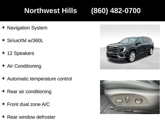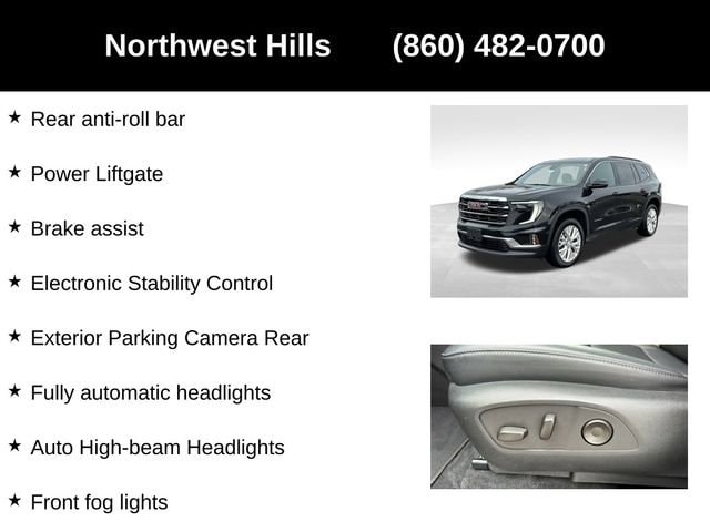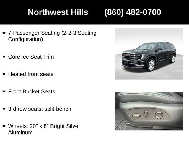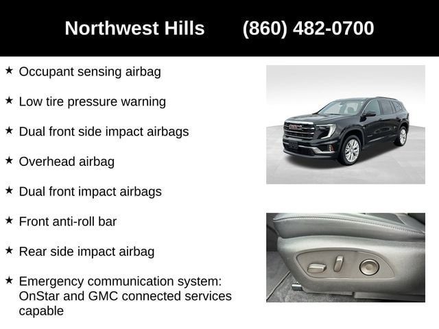 2024 GMC Acadia ElevationAWD, After Dark Cloth, 12 Speakers, 3rd row seats: split-bench, 6-Way Power Front Passenger Seat Adjuster, 7-Passenger Seating (2-2-3 Seating Configuration), 8-Way Power Driver Seat Adjuster, Air Conditioning, Apple CarPlay/Android Auto, Auto High-beam Headlights, Auto-dimming Rear-View mirror, Automatic temperature control, Brake assist, CoreTec Seat Trim, Dual front impact airbags, Dual front side impact airbags, Electronic Stability Control, Emergency communication system: OnStar and GMC connected services capable, Exterior Parking Camera Rear, Four wheel independent suspension, Front anti-roll bar, Front Bucket Seats, Front dual zone A/C, Front fog lights, Fully automatic headlights, Heated front seats, Heated steering wheel, Leather steering wheel, Low tire pressure warning, Navigation System, Occupant sensing airbag, Outside temperature display, Overhead airbag, Power Liftgate, Power windows, Rear air conditioning, Rear anti-roll bar, Rear side impact airbag, Rear window defroster, Remote keyless entry, Security system, SiriusXM w/360L, Speed-sensing steering, Steering wheel mounted audio controls, Telescoping steering wheel, Tilt steering wheel, Traction control, Wheels: 20 x 8 Bright Silver Aluminum.Say Yes to Sullivan! Our Dealer Conveyance fee is only $479!Certification Program Details: CarBravo Limited Bumper-to-Bumper Warranty **12 Months / 12,000 Miles of Coverage from the day you purchase **No Extra Charge included with every eligible vehicle **Covers many major vehicle systems for added peace of mind **All warranty repairs include parts, labor, and towing to the nearest CarBravo dealership (if necessary) 126-Point Multi-Point Inspection **Each vehicle must pass a comprehensive 126-point inspection **Thoroughly checked for safety, performance, and reliability **Ensures the vehicle meets strict quality standards before itâs offered for sale Added CarBravo Benefits **Convenience get warranty repairs done at any CarBravo dealership nationwide **24-Hour Roadside Assistance* help is just a call away, anytime **Courtesy Transportation* if your vehicle needs warranty repair, your CarBravo dealer will make sure you stay on the move