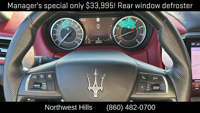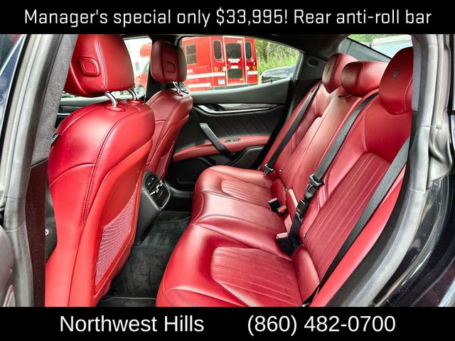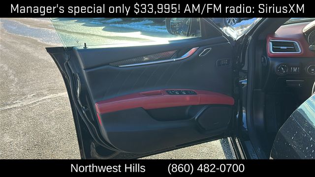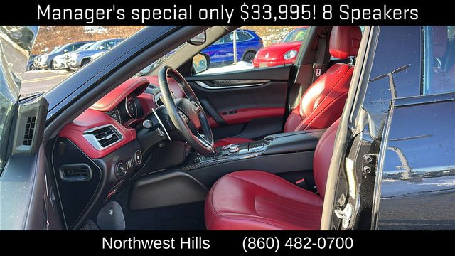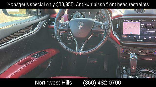 **Clean Carfax**, **All Wheel Drive**, Bluetooth Phone/Audio, **Apple car play / Android Auto**, Ghibli Modena Q4, 4D Sedan, 3.0L V6, ZF 8-Speed Automatic, AWD, Red Leather, 12-Way Power Heated Front Seats, 4-Wheel Disc Brakes, 8 Speakers, ABS brakes, Air Conditioning, Alloy wheels, Aluminum Column-Mounted Paddle Shifters, AM/FM radio: SiriusXM, Anti-whiplash front head restraints, Apple CarPlay/Android Auto, Auto-dimming door mirrors, Auto-dimming Rear-View mirror, Automatic temperature control, Brake assist, Bumpers: body-color, Compass, Delay-off headlights, Driver door bin, Driver vanity mirror, Dual front impact airbags, Dual front side impact airbags, Electronic Stability Control, Emergency communication system: Maserati Connect, Exterior Parking Camera Rear, Four wheel independent suspension, Front anti-roll bar, Front Bucket Seats, Front Center Armrest w/Storage, Front dual zone A/C, Front reading lights, Garage door transmitter: HomeLink, Heated door mirrors, Heated front seats, Heated steering wheel, High intensity discharge headlights: Bi-Xenon, Illuminated entry, Knee airbag, Leather Shift Knob, Leather steering wheel, Leather Upholstery, Low tire pressure warning, Memory seat, Navigation System, Occupant sensing airbag, Outside temperature display, Overhead airbag, Overhead console, Panic alarm, Passenger door bin, Passenger vanity mirror, Power door mirrors, Power driver seat, Power moonroof, Power passenger seat, Power steering, Power windows, Radio data system, Radio: AM/FM w/Maserati Intelligent Assistant, Rain sensing wipers, Rear anti-roll bar, Rear fog lights, Rear reading lights, Rear seat center armrest, Rear window defroster, Remote keyless entry, Security system, Speed control, Speed-sensing steering, Speed-Sensitive Wipers, Split folding rear seat, Sport steering wheel, Steering wheel memory, Steering wheel mounted audio controls, Tachometer, Telescoping steering wheel, Tilt steering wheel, Traction control, Trip computer, Turn signal indicator mirrors, Variably intermittent wipers, Voltmeter, Wheels: 19" Silver Poseidone.